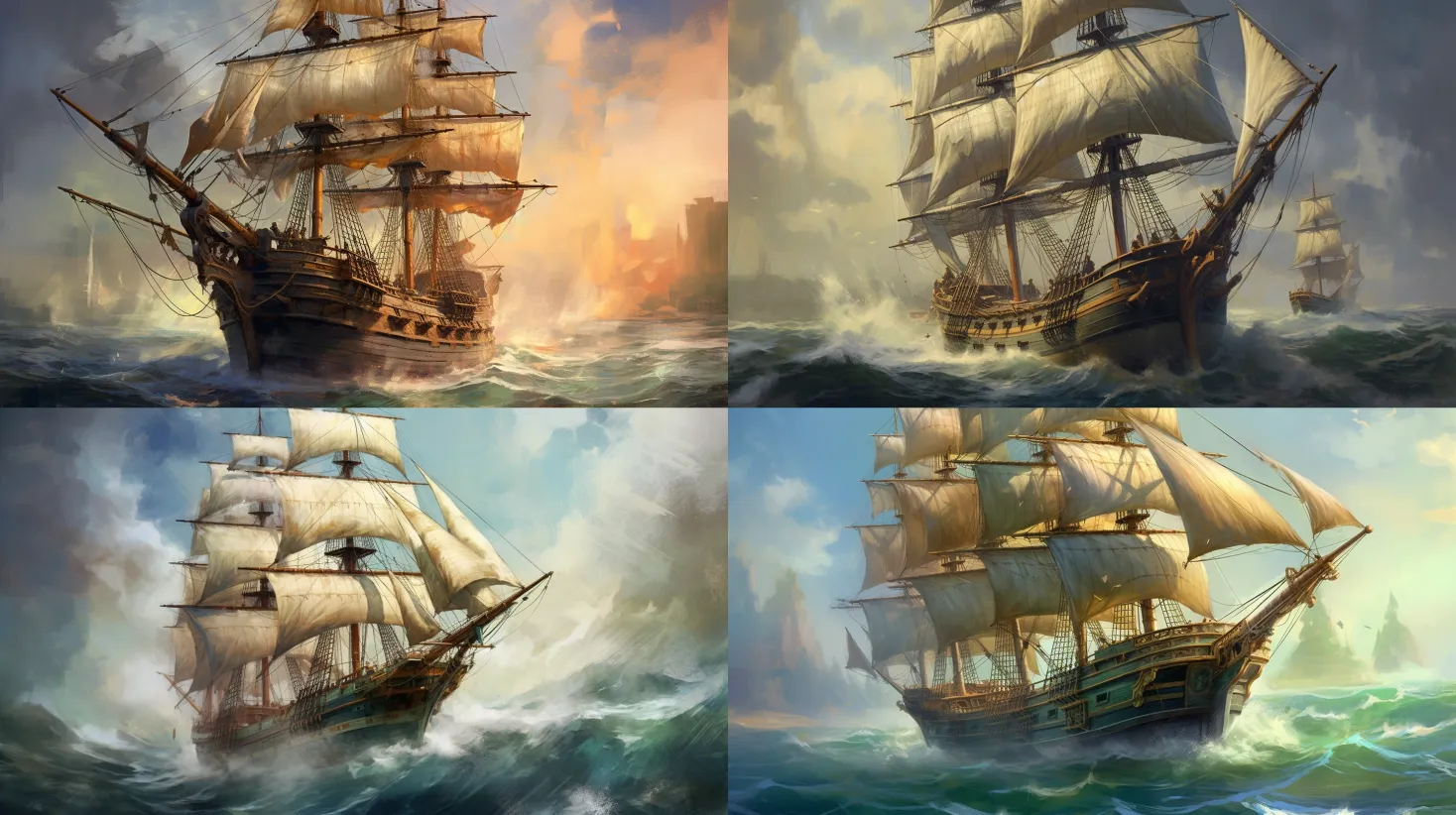 An illustration of an ancient seafaring vessel, capturing the maritime history and adventure of the high seas. Medium: digital painting. Style: realistic with muted colors. Composition: showcasing the intricate details of the ship, such as the sails, rigging, and wooden hull. --ar 16:9 --v 5.1 --style raw --q 2 --s 750A dramatic seascape painting depicting stormy waters, crashing waves, and the raw power of the ocean. Medium: oil painting. Style: impressionistic with bold brushstrokes. Composition: capturing the movement and energy of the turbulent sea, conveying a sense of awe and danger. --ar 16:9 --v 5.1 --style raw --q 2 --s 750An illustration featuring a collection of seashells, capturing the beauty and diversity of marine life found along the shore. Medium: watercolor painting. Style: delicate and detailed. Composition: highlighting the various shapes, colors, and textures of seashells, evoking a sense of wonder and tranquility. --ar 16:9 --v 5.1 --style raw --q 2 --s 750An illustration of a regatta of majestic tall ships, showcasing the elegance and grandeur of sailing vessels. Medium: digital illustration. Style: vibrant and dynamic. Composition: capturing the tall ships in full sail, with billowing canvas, flags, and the excitement of a race or gathering. --ar 16:9 --v 5.1 --style raw --q 2 --s 750An artistic interpretation of underwater exploration, revealing the mysteries and vibrant marine life beneath the surface. Medium: mixed media (digital and hand-drawn elements). Style: colorful and fantastical. Composition: depicting divers, marine creatures, and the ethereal beauty of coral reefs and underwater landscapes. --ar 16:9 --v 5.1 --style raw --q 2 --s 750A depiction of a tropical island paradise, featuring palm trees, pristine beaches, and crystal-clear waters. Medium: watercolor painting. Style: dreamy and serene. Composition: capturing the idyllic beauty and tranquility of a remote island, inviting viewers to escape to a nautical oasis. --ar 16:9 --v 5.1 --style raw --q 2 --s 750An artistic representation of a vintage nautical map, featuring intricate navigational charts, compass roses, and illustrations of sea creatures. Medium: ink drawing. Style: antique and detailed. Composition: showcasing the artistry and historical significance of nautical cartography. --ar 16:9 --v 5.1 --style raw --q 2 --s 750An illustration of a pirate's treasure hunt. Medium: digital painting. Style: adventurous and vibrant. Composition: capturing the excitement and thrill of a pirate crew searching for buried treasure on a remote island, with hidden clues, maps, and the promise of riches. --ar 16:9 --v 5.1 --style raw --q 2 --s 750A serene scene of a sailboat gliding across calm waters, as it sails into a beautiful sunset. Medium: acrylic painting. Style: peaceful and romantic. Composition: showcasing the graceful movement of the sailboat, the golden hues of the sunset, and the tranquility of the open sea. --ar 16:9 --v 5.1 --style raw --q 2 --s 750An awe-inspiring illustration of a majestic whale breaching the surface of the ocean, capturing the beauty and power of these magnificent creatures. Medium: digital illustration. Style: dynamic and detailed. Composition: showcasing the grandeur of the whale, the sparkling water, and the sense of wonder in encountering such a spectacle. --ar 16:9 --v 5.1 --style raw --q 2 --s 750An artistic representation of deep-sea exploration, featuring a submersible or divers descending into the mysterious depths of the ocean. Medium: mixed media (digital and hand-drawn elements). Style: atmospheric and otherworldly. Composition: depicting the darkness and bioluminescent wonders of the deep sea, with intriguing marine life and underwater landscapes. --ar 16:9 --v 5.1 --style raw --q 2 --s 750A charming illustration of a quaint coastal fishing village, with colorful boats, bustling docks, and charming seaside architecture. Medium: watercolor painting. Style: picturesque and inviting. Composition: capturing the vibrancy and character of the fishing village, conveying a sense of community and nautical livelihood. --ar 16:9 --v 5.1 --style raw --q 2 --s 750An enchanting depiction of a mermaid's sanctuary, an underwater realm of beauty and magic. Medium: digital painting. Style: ethereal and luminous. Composition: portraying mermaids, coral gardens, and the play of light in the underwater world, evoking a sense of wonder and enchantment. --ar 16:9 --v 5.1 --style raw --q 2 --s 750An illustration of a deserted island, inviting viewers on an adventure of exploration and discovery. Medium: pencil drawing. Style: detailed and mysterious. Composition: showcasing the untouched beauty of the island, with palm trees, hidden coves, and the allure of potential treasures. --ar 16:9 --v 5.1 --style raw --q 2 --s 750A depiction of a luxurious cruise ship, symbolizing elegance and leisurely travel on the high seas. Medium: acrylic painting. Style: realistic with vibrant colors. Composition: capturing the grandeur and amenities of the cruise ship, with gleaming decks, lounges, and the vastness of the open ocean. --ar 16:9 --v 5.1 --style raw --q 2 --s 750An illustration of a seafarer's companion, such as a parrot perched on a ship's mast, symbolizing companionship and adventure on nautical journeys. Medium: digital illustration. Style: playful and colorful. Composition: showcasing the vibrant feathers of the parrot, the ship's rigging, and the bond between the seafarer and their loyal feathered friend. --ar 16:9 --v 5.1 --style raw --q 2 --s 750A nautical illustration of a worn down ship on a vacant beach, crustacean and seals surround the ship. Medium: watercolor painting. Style: detailed and mysterious. Composition: showcasing the untouched beauty of the deserted beach, with palm trees and the allure of potential treasures. --ar 16:9 --v 5.1 --style raw --q 2 --s 750An illustration of a coastal lighthouse standing tall against the crashing waves, guiding ships safely to shore. Med
