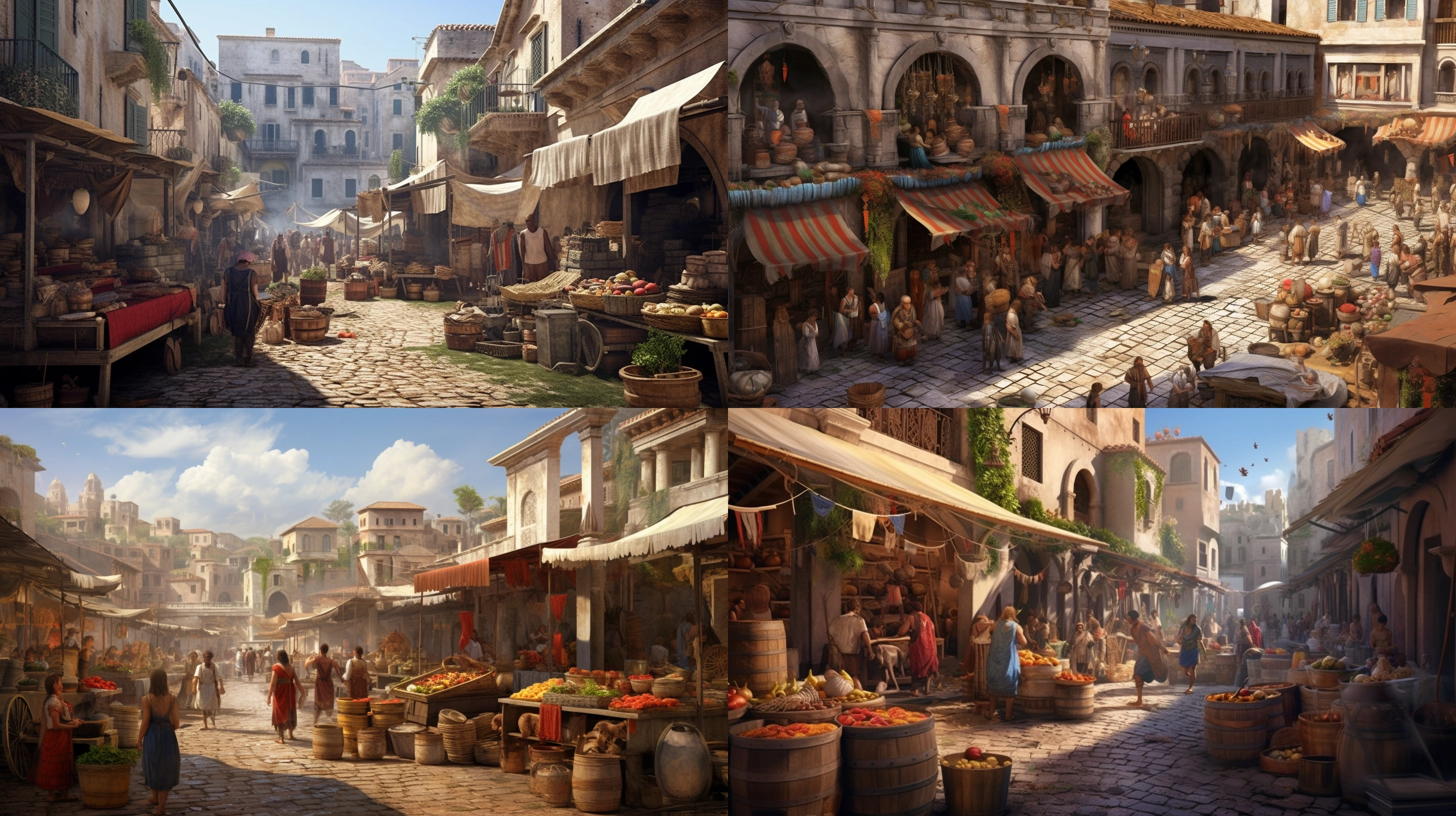 Imagine a bustling marketplace in the heart of an ancient civilization, perhaps the Roman Empire. The scene is filled with vendors selling a variety of goods, from colorful textiles to exotic spices. The medium is photorealistic, capturing every detail from the worn cobblestone streets to the weathered faces of the vendors. The style is reminiscent of a painting by Pieter Bruegel the Elder, filled with intricate details and a sense of bustling activity. The lighting is soft and warm, casting long shadows that add depth to the scene. The colors are rich and vibrant, with a palette dominated by earth tones. The composition is shot with a Canon EOS 5D Mark IV DSLR camera, using an EF 50mm f/1.8 STM lens. The resolution is 30.4 megapixels, with an ISO sensitivity of 32,000 and a shutter speed of 8000 second. --ar 16:9 --v 5.1 --style raw --q 2 --s 750Envision the grandeur of an ancient Egyptian temple. The towering stone pillars, intricately carved with hieroglyphs, reach towards a clear, azure sky. The medium is photorealistic, capturing the texture of the stone and the play of light and shadow. The style is reminiscent of the grandeur and mystery of ancient Egypt, with a nod to the work of photographer Francis Frith. The lighting is harsh and direct, emphasizing the stark beauty of the architecture. The colors are muted, with a palette of sandstone and sky blue. The composition is shot with a Nikon D850 DSLR, using a Nikkor 24-70mm f/2.8 lens. The resolution is 45.7 megapixels, with an ISO sensitivity of 25,600 and a shutter speed of 1/2000 second. --ar 16:9 --v 5.1 --style raw --q 2 --s 750Imagine a serene scene of an ancient Greek philosopher teaching his students in the shade of an olive tree. The medium is photorealistic, capturing the texture of the philosopher's robes, the rough bark of the tree, and the attentive expressions of the students. The style is reminiscent of classical Greek art, with a nod to the work of photographer Steve McCurry for its vibrant color and depth. The lighting is soft and diffused, casting a warm glow on the scene. The colors are earthy and natural, with a palette of olive green, terracotta, and azure blue. The composition is shot with a Sony A7R IV, using a Sony FE 24-70mm f/2.8 GM lens. The resolution is 61 megapixels, with an ISO sensitivity of 32,000 and a shutter speed of 1/8000 second. --ar 16:9 --v 5.1 --style raw --q 2 --s 750Envision a bustling scene from the ancient city of Babylon. The Hanging Gardens are in full bloom, with water cascading down from the terraces. The medium is photorealistic, capturing the lush greenery, the vibrant flowers, and the awe-struck faces of the people. The style is reminiscent of the grandeur and opulence of ancient Mesopotamia, with a nod to the work of photographer Yann Arthus-Bertrand for its aerial perspective. The lighting is bright and clear, emphasizing the vibrancy of the scene. The colors are lush and vibrant, with a palette of emerald green, bright blue, and golden yellow. The composition is shot with a Canon EOS-1D X Mark III, using a Canon EF 24-70mm f/2.8L II USM lens. The resolution is 20.1 megapixels, with an ISO sensitivity of 102,400 and a shutter speed of 1/8000 second. --ar 16:9 --v 5.1 --style raw --q 2 --s 750Imagine a scene from the ancient Indus Valley civilization. A group of artisans are crafting pottery, their hands covered in clay. The medium is photorealistic, capturing the texture of the clay, the concentration on the artisans' faces, and the intricate designs on the pottery. The style is reminiscent of ancient Indian art, with a nod to the work of photographer Raghu Rai for its intimate and candid portrayal of everyday life. The lighting is soft and warm, casting a gentle glow on the scene. The colors are earthy and muted, with a palette of terracotta, brown, and beige. The composition is shot with a Nikon D6, using a Nikon AF-S NIKKOR 24-70mm f/2.8E ED VR lens. The resolution is 20.8 megapixels, with an ISO sensitivity of 102,400 and a shutter speed of 1/8000 second. --ar 16:9 --v 5.1 --style raw --q 2 --s 750Envision a scene from the ancient Mayan civilization. A high priest is performing a ritual at the top of a pyramid, surrounded by a crowd of onlookers. The medium is photorealistic, capturing the intricate carvings on the pyramid, the colorful feathers in the priest's headdress, and the awe-struck expressions of the crowd. The style is reminiscent of ancient Mayan art, with a nod to the work of photographer Sebastião Salgado for its dramatic and powerful imagery. The lighting isharsh and direct, casting long shadows that add to the drama of the scene. The colors are vibrant and rich, with a palette of turquoise, gold, and deep red. The composition is shot with a Sony A9 II, using a Sony FE 70-200mm f/2.8 GM OSS lens. The resolution is 24.2 megapixels, with an ISO sensitivity of 51,200 and a shutter speed of 1/8000 second. --ar 16:9 --v 5.1 --style raw --q 2 --s 750Imagine a scene from the ancient Chinese civilization. A scholar is writing calligraphy in a tranquil garden, surrounded by blooming cherry blossom trees. The medium is photorealistic, capturing the elegance of the scholar's movements, the delicate blossoms, and the peaceful atmosphere. The style is reminiscent of traditional Chinese art, with a nod to the work of photographer Fan Ho for its poetic and atmospheric quality. The lighting is soft and diffused, casting a dreamy glow on the scene. The colors are soft and pastel, with a palette of pink, white, and green. The composition is shot with a Fujifilm GFX 100, using a Fujinon GF32-64mmF4 R LM WR lens. The resolution is 102 megapixels, with an ISO sensitivity of 12,800 and a shutter speed of 1/4000 second. --ar 16:9 --v 5.1 --style raw --q 2 --s 750Envision a scene from the ancient Inca civilization. A group of farmers are tending to their terraced fields high in the Andes mountains. The medium is photorealistic, capturing the rugged landscape, the vibrant crops, and 