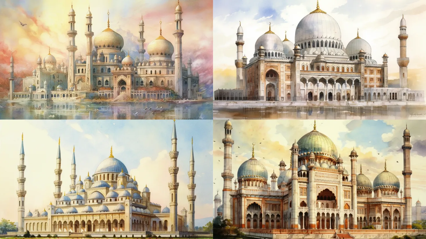 A depiction of a grand and intricately designed mosque, capturing its architectural beauty and spiritual significance. Medium: watercolor painting. Style: realistic with vibrant colors. Composition: highlighting the elegant domes, minarets, and geometric patterns that adorn the mosque. --ar 16:9 --v 5.1 --style raw --q 2 --s 750An illustration of a majestic cathedral, conveying its awe-inspiring presence and religious symbolism. Medium: digital painting. Style: ethereal and luminous. Composition: showcasing the towering spires, stained glass windows, and ornate details that characterize the cathedral. --ar 16:9 --v 5.1 --style raw --q 2 --s 750A representation of ancient temple ruins, capturing the weathered beauty and historical significance of the sacred site. Medium: charcoal drawing. Style: evocative and textured. Composition: portraying the crumbling columns, intricate carvings, and a sense of timelessness surrounding the ruins. --ar 16:9 --v 5.1 --style raw --q 2 --s 750An artistic interpretation of a meditating figure, symbolizing peace, enlightenment, and spiritual practice. Medium: sculpture. Style: minimalist with clean lines. Composition: emphasizing the serenity and introspection of the meditating figure, with a focus on posture and tranquility. --ar 16:9 --v 5.1 --style raw --q 2 --s 750A depiction of a sacred pilgrimage site, capturing the journey of devotees and their deep connection to their faith. Medium: oil painting. Style: realistic with warm tones. Composition: showcasing the pilgrims in prayer, the landscape they traverse, and the sense of devotion and spiritual unity. --ar 16:9 --v 5.1 --style raw --q 2 --s 750An illustration of an open sacred scripture, representing the holy texts and their profound impact on religious practice. Medium: digital illustration. Style: detailed and intricate. Composition: highlighting the pages, calligraphy, and decorative elements that make the scripture a revered object. --ar 16:9 --v 5.1 --style raw --q 2 --s 750A depiction of a divine messenger, such as an angel, representing a connection between the mortal and the divine. Medium: acrylic painting. Style: ethereal with soft colors. Composition: capturing the grace, purity, and otherworldly presence of the divine messenger. --ar 16:9 --v 5.1 --style raw --q 2 --s 750An artistic interpretation of a serene and spiritually significant garden, representing a place of reflection and connection to the divine. Medium: mixed media (digital and hand-drawn elements). Style: peaceful and harmonious. Composition: showcasing lush foliage, blooming flowers, and elements of sacred symbolism within the garden. --ar 16:9 --v 5.1 --style raw --q 2 --s 750A portrayal of devotees engaged in prayer, illustrating the intimate and personal connection to the divine. Medium: charcoal drawing. Style: emotive and expressive. Composition: capturing the devotion, reverence, and various prayer postures of the devotees as they seek spiritual solace. Medium: digital painting. Style: serene and contemplative. Composition: showcasing a diverse group of devotees engaged in prayer, with emphasis on their expressions, body language, and the atmosphere of sacredness. --ar 16:9 --v 5.1 --style raw --q 2 --s 750An artistic representation of a universally recognized symbol of peace, conveying the message of harmony and unity. Medium: sculpture. Style: minimalist with clean lines. Composition: focusing on the simplicity and elegance of the peace symbol, evoking a sense of serenity and hope. --ar 16:9 --v 5.1 --style raw --q 2 --s 750An illustration featuring ancient religious texts, representing the wisdom and spiritual teachings preserved through generations. Medium: digital illustration. Style: intricate and detailed. Composition: showcasing the intricacies of the texts, ancient calligraphy, and decorative elements that signify their sacredness. --ar 16:9 --v 5.1 --style raw --q 2 --s 750A depiction of a Zen garden, designed to inspire mindfulness, meditation, and a sense of inner peace. Medium: watercolor painting. Style: minimalistic with gentle brushstrokes. Composition: emphasizing the simplicity and harmony of the garden, with raked sand, carefully placed rocks, and lush greenery. --ar 16:9 --v 5.1 --style raw --q 2 --s 750An evocative representation of the call to prayer, capturing the spiritual significance and sense of community in daily religious practice. Medium: acrylic painting. Style: vibrant colors and dynamic brushwork. Composition: portraying the muezzin or a sacred space from where the call to prayer echoes, symbolizing devotion and unity. --ar 16:9 --v 5.1 --style raw --q 2 --s 750An illustration of a serene sunrise, symbolizing new beginnings, spiritual awakening, and the divine presence. Medium: digital illustration. Style: ethereal and luminous. Composition: capturing the beauty and tranquility of the sunrise, with warm colors, soft rays of light, and a sense of reverence. --ar 16:9 --v 5.1 --style raw --q 2 --s 750A symbolic representation of a divine intervention or miracle, illustrating the transcendental power and grace of the divine. Medium: charcoal drawing. Style: dramatic and expressive. Composition: depicting a significant moment of divine intervention, conveying the profound impact it has on individuals or a larger community. --ar 16:9 --v 5.1 --style raw --q 2 --s 750An artistic interpretation of sacred music and chanting, capturing the spiritual resonance and transformative power of devotional music. Medium: mixed media (digital and hand-drawn elements). Style: dynamic and rhythmic. Composition: representing the musicians, singers, and the ethereal quality of their voices, as they connect with the divine through music. --ar 16:9 --v 5.1 --style raw --q 2 --s 750A depiction of the blessing of nature, illustrating the sacredness and interconnection between the divine and the natural world. Medium: oil painting. Style: mystical and atmospheric. Composition: portraying elements of nature, suc