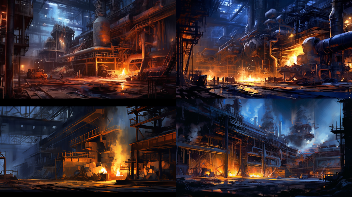 A massive steel production facility, medium: digital painting, style: inspired by the artwork in industrial photography, lighting: bright and harsh industrial lighting highlighting the machinery and structures, colors: a mix of metallic grays, dark blues, and vibrant sparks, composition: showcasing the scale and complexity of the factory, capturing the raw power and productivity of industrial manufacturing. --ar 16:9 --v 5.1 --style raw --q 2 --s 750A vast storage facility, medium: digital painting, style: reminiscent of the artwork in urban exploration photography, lighting: dim and atmospheric lighting accentuating the shadows and rows of shelves, colors: a combination of cool grays, deep shadows, and sporadic pops of color from storage containers, composition: highlighting the sheer size and organized chaos of the warehouse, capturing the industrial functionality and the sense of scale and logistics involved. --ar 16:9 --v 5.1 --style raw --q 2 --s 750A bustling shipping port, medium: digital painting, style: inspired by the artwork in port photography, lighting: a mix of natural light and artificial lighting from dock lamps, colors: a combination of cool blues, metallic surfaces, and vibrant containers, composition: showcasing the organized chaos of loading and unloading cargo ships, capturing the constant movement and the interconnectedness of global logistics. --ar 16:9 --v 5.1 --style raw --q 2 --s 750A sprawling oil refinery, medium: digital painting, style: reminiscent of the artwork in industrial landscape photography, lighting: harsh and intense lighting accentuating the industrial equipment and pipelines, colors: a mix of metallic grays, rusty tones, and fiery oranges from flares, composition: highlighting the intricate network of pipes, tanks, and machinery, capturing the industrial process of refining oil and the massive scale of the operation. --ar 16:9 --v 5.1 --style raw --q 2 --s 750A towering smokestack emitting steam and exhaust, medium: digital painting, style: inspired by the artwork in industrial power plant photography, lighting: smoky and atmospheric lighting with a glow from the furnace, colors: a combination of industrial grays, smoky blacks, and vibrant reds from hot metal, composition: showcasing the massive machinery, smokestacks, and the sense of energy generation and power associated with industrial power plants. --ar 16:9 --v 5.1 --style raw --q 2 --s 750A fiery and molten metal casting facility, medium: digital painting, style: reminiscent of the artwork in foundry photography, lighting: intense and glowing lighting from the molten metal and furnaces, colors: a mix of fiery oranges, deep reds, and dark industrial surfaces, composition: capturing the heat and energy of the foundry, showcasing the pouring of molten metal, and the industrial process of shaping and casting metals. --ar 16:9 --v 5.1 --style raw --q 2 --s 750A bustling construction site with cranes and scaffolding, medium: digital painting, style: inspired by the artwork in construction photography, lighting: bright and natural lighting with shadows cast by the structures, colors: a combination of dusty earth tones, metallic surfaces, and bright safety colors, composition: showcasing the organized chaos of the construction site, capturing the scale and progress of the project, highlighting the heavy machinery, scaffolding, and the skilled workers shaping the industrial landscape. --ar 16:9 --v 5.1 --style raw --q 2 --s 750A fleet of heavy-duty trucks on a highway, medium: digital painting, style: reminiscent of the artwork in trucking photography, lighting: natural lighting with reflections on the truck surfaces, colors: a mix of metallic grays, vibrant logos, and the bright colors of cargo containers, composition: showcasing the power and efficiency of industrial transportation, capturing the movement and scale of the trucks as they traverse the highway. --ar 16:9 --v 5.1 --style raw --q 2 --s 750A busy railway yard with trains and cargo, medium: digital painting, style: inspired by the artwork in railway photography, lighting: soft and diffused lighting with a glow from train headlights, colors: a combination of metallic grays, vibrant locomotive colors, and earthy tones of railroad tracks, composition: highlighting the organized chaos of the railway yard, capturing the constant movement and the importance of rail transport in industrial logistics. --ar 16:9 --v 5.1 --style raw --q 2 --s 750A massive steel bridge spanning a river, medium: digital painting, style: reminiscent of the artwork in bridge photography, lighting: natural lighting with reflections on the bridge surface, colors: a mix of metallic grays, vibrant cables, and the surrounding landscape, composition: showcasing the engineering marvel of the bridge, capturing its imposing structure, and the sense of connectivity and transportation it provides. --ar 16:9 --v 5.1 --style raw --q 2 --s 750A post-industrial landscape with abandoned factories, medium: digital painting, style: inspired by the artwork in urban exploration photography, lighting: moody and atmospheric lighting with shadows in the decayed structures, colors: a combination of desaturated tones, rusty surfaces, and overgrown vegetation, composition: capturing the eerie beauty of the abandoned industrial landscape, reflecting on the consequences of industrialization and the passage of time. --ar 16:9 --v 5.1 --style raw --q 2 --s 750A modern and multi-purpose industrial complex, medium: digital painting, style: reminiscent of the artwork in architectural renderings, lighting: even and bright lighting showcasing the various buildings and facilities, colors: a combination of sleek metallic surfaces, glass facades, and pops of color in signage, composition: highlighting the diverse functions of the industrial complex, capturing its efficiency, and the interconnectedness of different industries within a single site. --ar 16:9 --v 5.1 --style raw --q 2 --s 750A controlled de