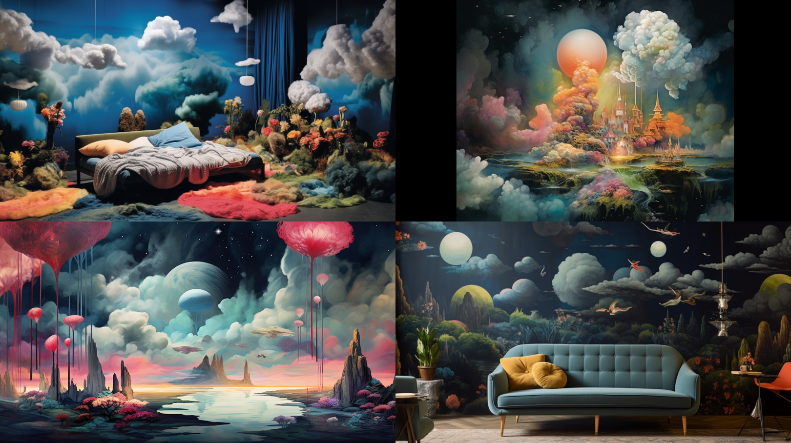 Envision a dreamlike landscape, with ethereal clouds floating in a midnight sky. The medium is surrealistic, capturing the whimsical and otherworldly nature of dreams. The style is reminiscent of the work of surrealist artist Salvador Dalí, with a nod to the dreamscapes of Max Ernst for their fantastical elements. The lighting is soft and mystical, casting a dreamy glow over the scene. The colors are a mix of deep blues, purples, and hints of iridescent hues, evoking a sense of mystery and wonder. The composition is digitally created, allowing for infinite possibilities and imaginative exploration. --ar 16:9 --v 5.1 --style raw --q 2 --s 750Envision a dreamy underwater scene, with vibrant coral reefs and colorful marine life. The medium is fantastical, capturing the beauty and tranquility of an underwater dream. The style is reminiscent of the work of underwater photographer David Doubilet, with a nod to the dreamlike illustrations of Odilon Redon for their imaginative quality. The lighting is soft and diffused, illuminating the underwater world with a gentle glow. The colors are a blend of vibrant blues, greens, and warm tones, creating a mesmerizing underwater palette. The composition is digitally painted, allowing for a dreamlike interpretation of the underwater realm. --ar 16:9 --v 5.1 --style raw --q 2 --s 750Envision a dreamy forest at twilight, with tall trees and a mystical atmosphere. The medium is painterly, capturing the enchantment and serenity of a dreamy woodland. The style is reminiscent of the romantic landscapes of Caspar David Friedrich, with a nod to the dreamlike compositions of J.M.W. Turner for their atmospheric quality. The lighting is soft and dappled, casting gentle rays of light through the trees. The colors are a mix of deep greens, warm earthy tones, and subtle hints of vibrant hues, evoking a sense of magic and tranquility. The composition is created using digital painting techniques, allowing for a dreamlike interpretation of the forest. --ar 16:9 --v 5.1 --style raw --q 2 --s 750Envision a surreal dreamscape, with floating islands suspended in the sky. The medium is digital art, capturing the imagination and limitless possibilities of dreams. The style is reminiscent of the dreamlike illustrations of René Magritte, with a nod to the whimsical creations of Yayoi Kusama for their playful and fantastical elements. The lighting is soft and dreamy, casting a surreal glow over the floating islands. The colors are a mix of vibrant hues, pastels, and surreal combinations, creating a visually striking dreamscape. The composition is digitally painted, allowing for an exploration of the subconscious mind. --ar 16:9 --v 5.1 --style raw --q 2 --s 750Envision a dreamy celestial landscape, with swirling galaxies and stars filling the sky. The medium is cosmic, capturing the awe and wonder of the cosmos within a dream. The style is reminiscent of the cosmic art of Robert Venosa, with a nod to the dreamlike illustrations of Hieronymus Bosch for their intricate and visionary quality. The lighting is cosmic and luminescent, illuminating the celestial expanse with an otherworldly glow. The colors are a blend of deep blues, purples, and hints of vibrant nebulas, evoking a sense of cosmic exploration and transcendence. The composition is digitally created, allowing for an infinite cosmic dreamscape. --ar 16:9 --v 5.1 --style raw --q 2 --s 750Envision a surreal dreamscape, with floating islands and levitating objects defying gravity. The medium is fantastical, capturing the whimsy and imagination of dreams. The style is reminiscent of the dreamlike paintings of Marc Chagall, with a nod to the surreal creations of Remedios Varo for their poetic and symbolic elements. The lighting is soft and dreamy, casting a mystical glow over the floating elements. The colors are a mix of pastel tones, vibrant hues, and subtle gradients, creating a visually captivating dreamscape. The composition is digitally painted, allowing for a surreal and whimsical interpretation of the dream world. --ar 16:9 --v 5.1 --style raw --q 2 --s 750Envision a dreamlike desert landscape, with towering sand dunes and a surreal atmosphere. The medium is ethereal, capturing the mystery and vastness of the desert in a dream. The style is reminiscent of the dreamscapes of René Magritte, with a nod to the surreal photographs of Dorothea Lange for their evocative and symbolic quality. The lighting is soft and golden, casting long shadows over the dunes. The colors are a blend of warm earthy tones, subtle pastels, and hints of vibrant hues, creating a visually captivating desert dreamscape. The composition is digitally created, allowing for a dreamlike interpretation of the desert landscape. --ar 16:9 --v 5.1 --style raw --q 2 --s 750Envision a surreal dreamscape, with a labyrinth of staircases and doorways leading to unknown realms. The medium is conceptual, capturing the intrigue and exploration within a dream. The style is reminiscent of the dreamlike illustrations of M.C. Escher, with a nod to the surreal environments of Salvador Dalí for their optical illusions and mind-bending elements. The lighting is mysterious and dramatic, casting shadows and highlights on the intricate architectural elements. The colors are a mix of deep blues, earthy tones, and pops of vibrant hues, creating a visually engaging dreamscape. The composition is digitally painted, allowing for a surreal and labyrinthine interpretation of the dream world. --ar 16:9 --v 5.1 --style raw --q 2 --s 750Envision a dreamy garden, filled with lush foliage, vibrant flowers, and magical creatures. The medium is fantastical, capturing the enchantment and tranquility of a dream garden. The style is reminiscent of the whimsical illustrations of Arthur Rackham, with a nod to the dreamlike compositions of Remedios Varo for their imaginative and symbolic elements. The lighting is soft and dappled, casting a gentle glow over the garden. The colors are a mix of 
